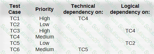 Which of the following test execution schedules BEST takes into account the priorities and technical and logical dependencies?