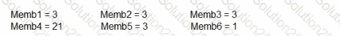 Consider an estimation session in which a six-member Agile team (Memb1..... Memb6) uses the planning poker technique to estimate a user story (in story points). The team members will use a set of cards with the following values: 1,2, 3,5, 8,13,21. Below is the outcome of the first round of estimation for this session:
