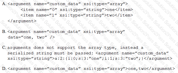 How do you pass an array [‘one’, ‘two] as a parameter to you block using the layout XML arguments directive?