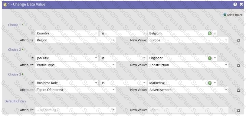 Which attribute(s) will be updated if a Lead is running through the Flow and all Choices except the Default Choice would match?