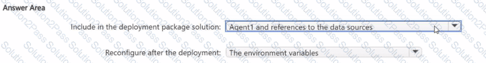 What should you include in the deployment package solution, and what should you reconfigure after the deployment? To answer, select the appropriate options in the answer area.
