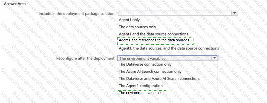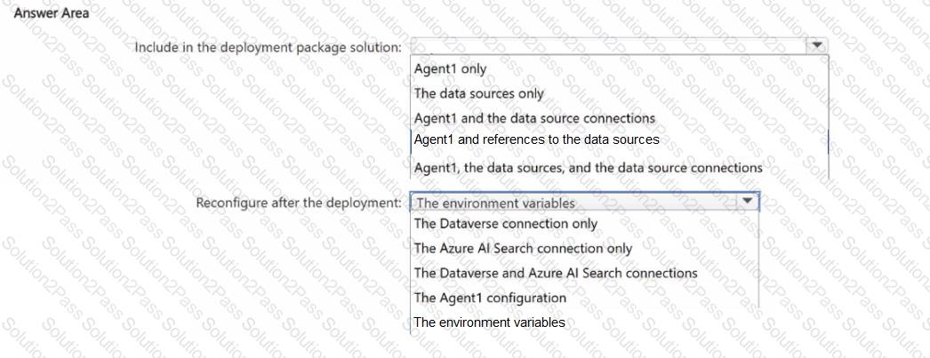 You are designing an application lifecycle management (ALM) process to deploy a Microsoft Copilot Studio agent between the environments.