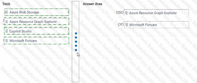 Which tools should you recommend to assist the CISO and the CIO with their specific responsibilities? To answer, drag the appropriate tools to the correct executives. Each tool may be used once, more than once, or not at all. You may need to drag the split bar between panes or scroll to view content.