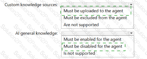The company has a Copilot Studio agent named Agent! in development. Agent1 uses the following grounding data sources: