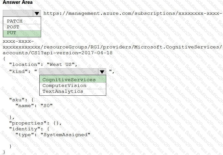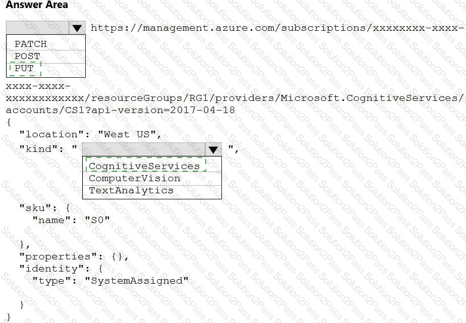 You have the following C# method for creating Azure Cognitive Services resources programmatically.