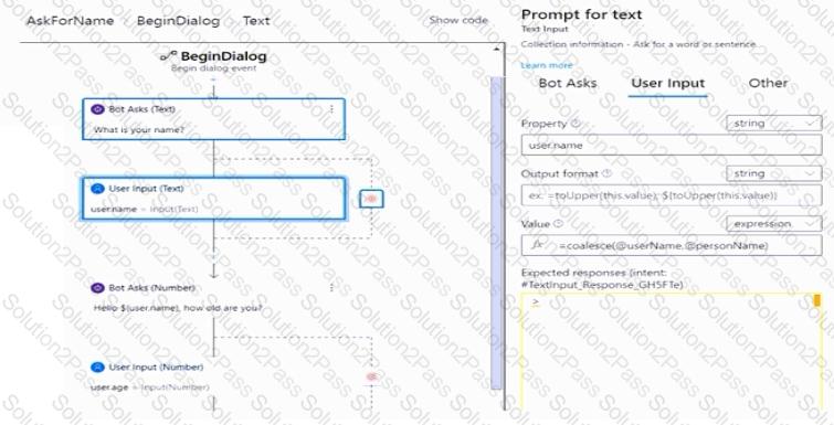You are building a chatbot by using the Microsoft Bot Framework Composer. You have the dialog design shown in the following exhibit.