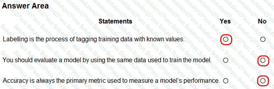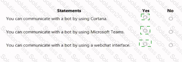 For each of the following statements, select Yes if the statement is true. Otherwise, select No.