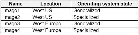 You have a shared image gallery that contains the Windows 10 images shown in the following table.