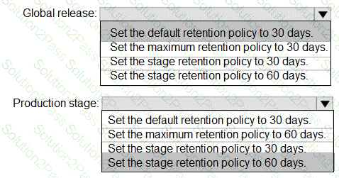 How should you configure the release retention policy for the investment planning applications suite? To answer, select the appropriate options in the answer area.