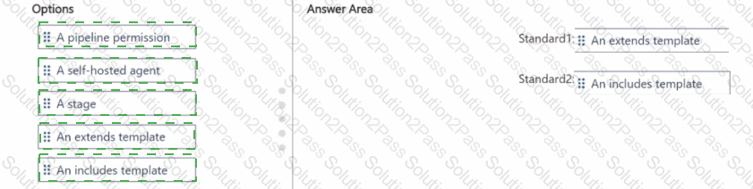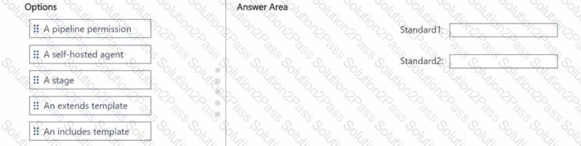 What should you use to implement each standard? To answer, drag the appropriate options to the correct standards. Each component may be used once, more than once, or not at all. You may need to drag the split bar between panes or scroll to view content.