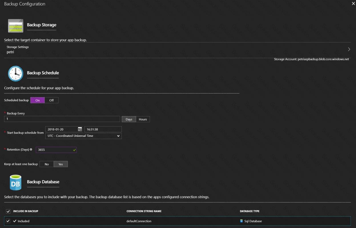 Your company plans to implement a new compliance strategy that will require all Azure web apps to be backed up every five hours.
