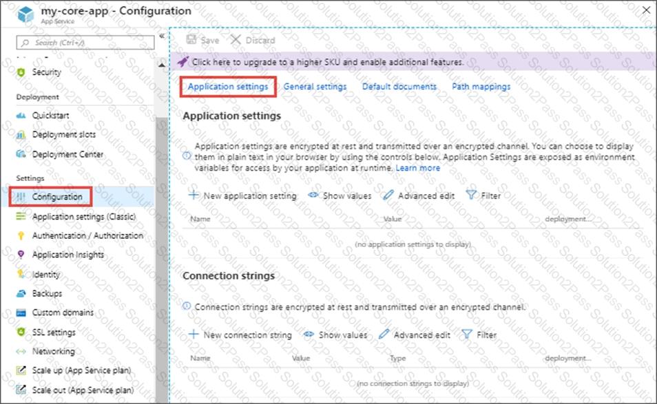 You need to configure an Azure web app named az400-9940427-main to contain an environmental variable named “MAX_ITEMS”. The environmental variable must have a value of 50.