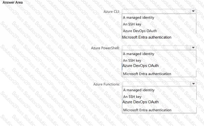 What should you recommend for each service? To answer, select the appropriate options in the answer area.