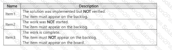 You are using Agile process methodologies and Azure Boards in Azure DevOps. You import the work items shown in the following table.
