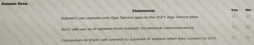The VNet Integration settings for as12 are configured as shown in the Vnet Integration exhibit.