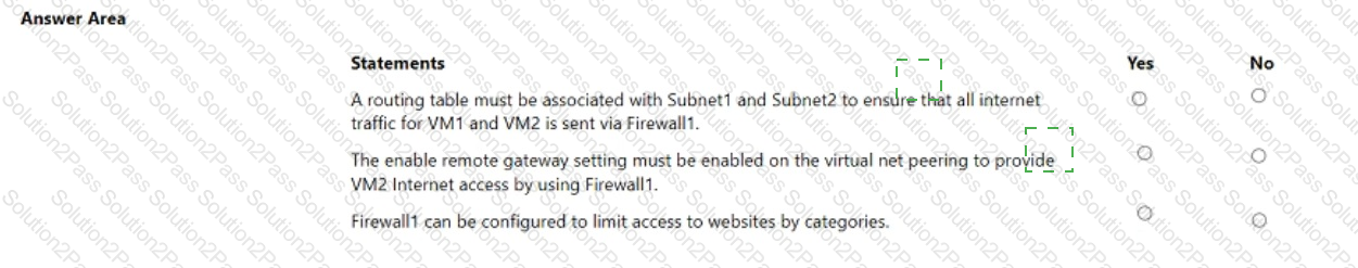 No custom private endpoints. service endpoints. routing tables, or network security groups (NSGs) were created. For each of the following statements, select Yes if the statement is true. Otherwise, select No. NOTE: Each correct selection is worth one point.