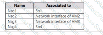 Vne1l contains two virtual machines named VM1 and VM2. Vnet2 contains two virtual machines named VM3 and VM4. You have the network security groups (NSGs) shown in the following table that include only default rules.