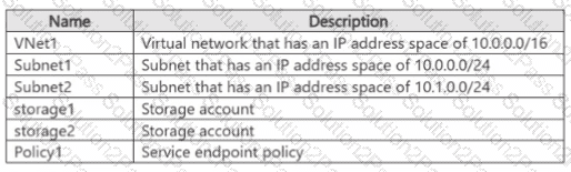 You need to ensure that VM1 can access storage1. VM1 must be prevented from accessing any other storage accounts.