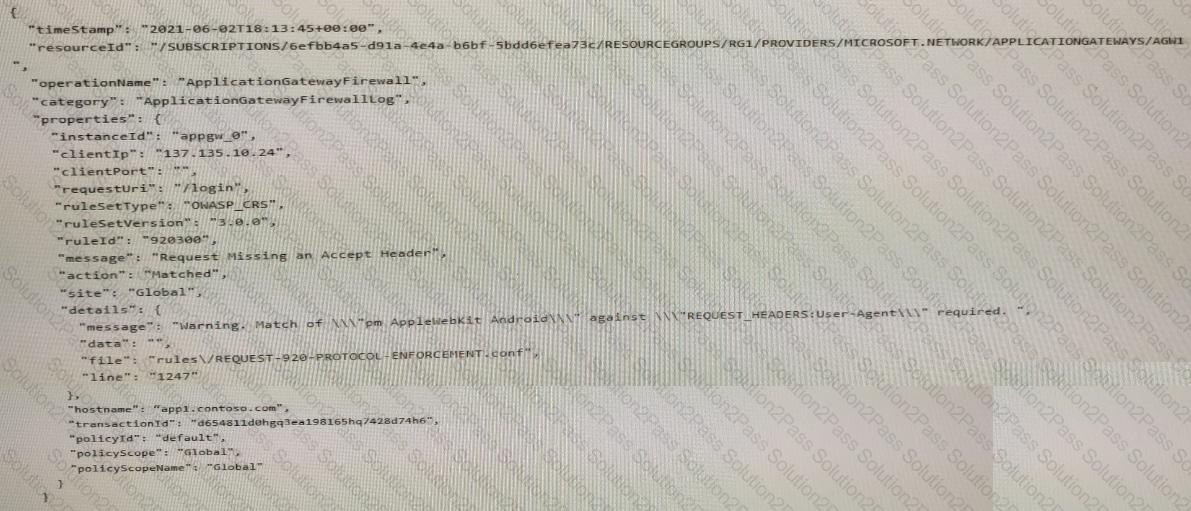 Solution: You create a WAF policy exclusion request headers that contain 137.135.10.24.