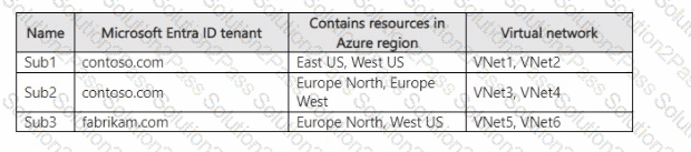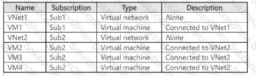 You have two Azure subscriptions named Sub1 and Sub2 that contain the resources shown in the following table.