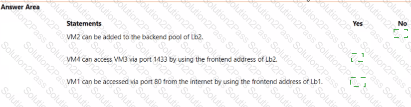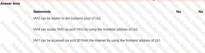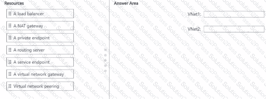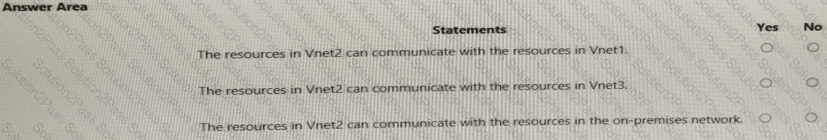 Subnet2 has a delegation to the Microsoft.Web/serverfarms service. The subscription co ntains the resources shown in the following table.