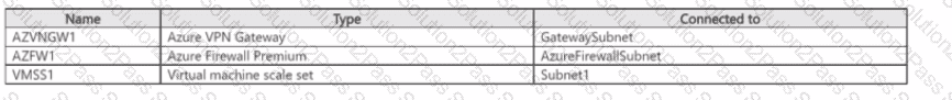 You are preparing to connect your on-premises network to VNET4 by using a Site-to-Site VPN. The on-premises endpoint of the VPN will be created on a firewall named Firewall 1.