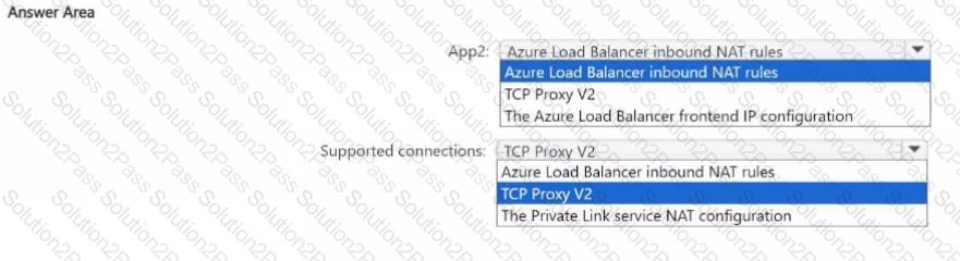 You have an Azure subscription. The subscription contains two virtual machine scale sets that host two apps named App1 and App2, an Azure Private Link service named PLS1. and an Azure load balancer named LB1. PLS1 uses LB1 and has TCP Proxy V2 disabled PLS1 provides access to App1 only.