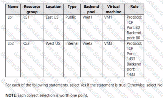 You have the Azure load balancers shown in the following table.