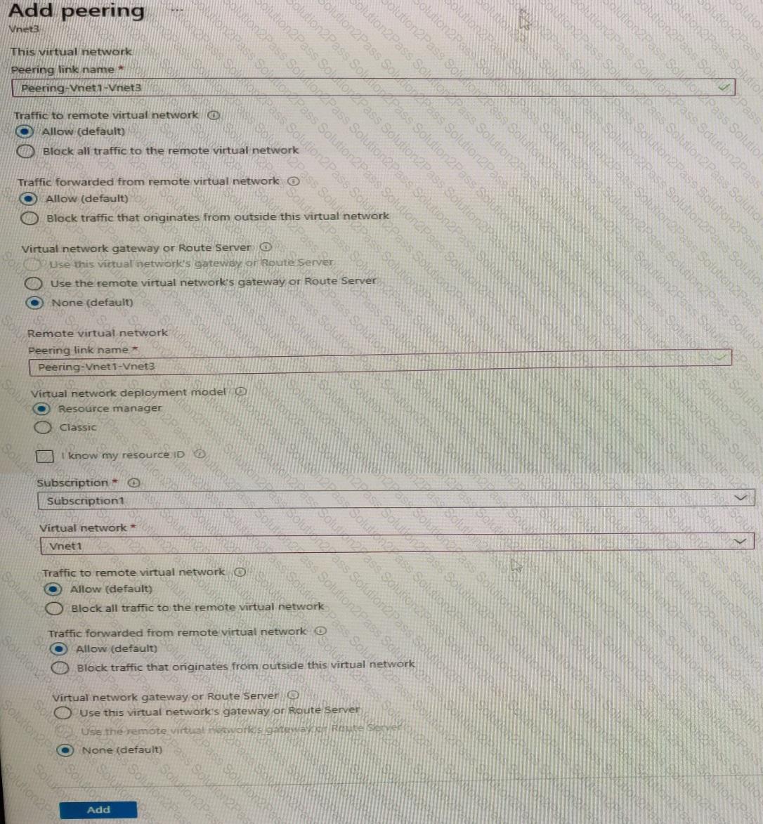 You have a peering connection between Vnet1 and Vnet3 as shown in the Peering -Vnet1-Vnet3 exhibit.