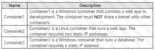 You have a Windows Server container host named Server! that has a single disk. On Server1, you plan to start the containers shown in the following table.