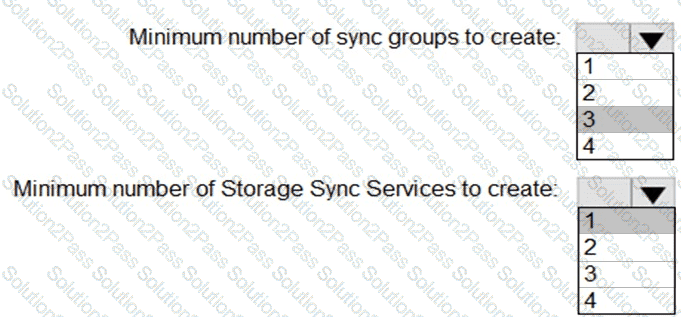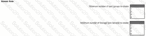 You need to configure Azure File Sync to meet the file sharing requirements. What should you do? To answer, select the appropriate options in the answer area. NOTE Each correct selection is worth one point.