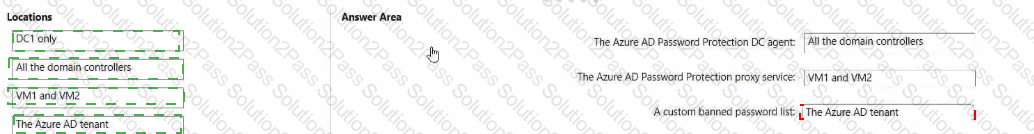 Where should you configure the components for Azure AD Password Protection? lo answer, drag the appropriate components to the correct locations. Each component may be used once, more than once, or not at all. You may need to drag the split bar between panes or scroll to view content.