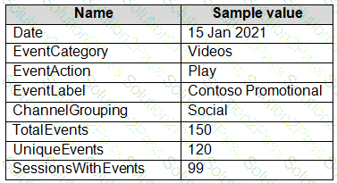 From a website analytics system, you receive data extracts about user interactions such as downloads, link clicks, form submissions, and video plays.
