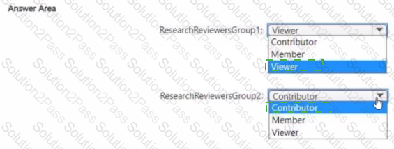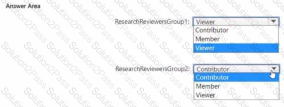 Which workspace rote assignments should you recommend for ResearchReviewersGroupl and ResearchReviewersGroupZ? To answer, select the appropriate options in the answer area.