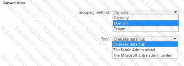 Which two actions should you recommend performing from the Fabric Admin portal? Each correct answer presents part of the solution.
