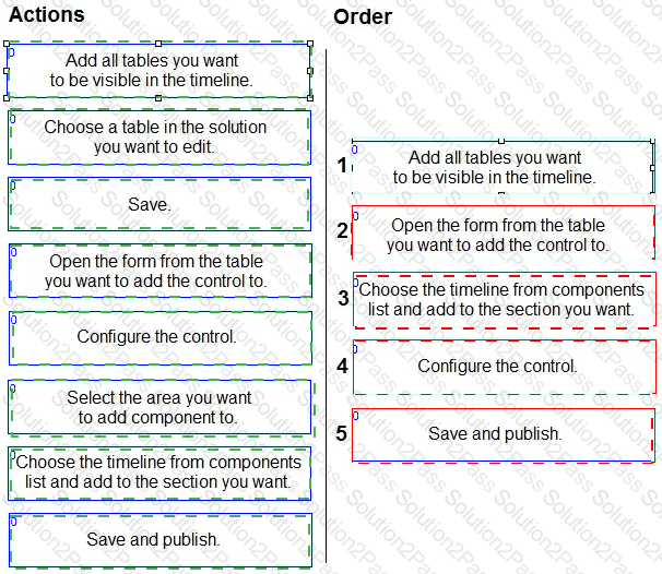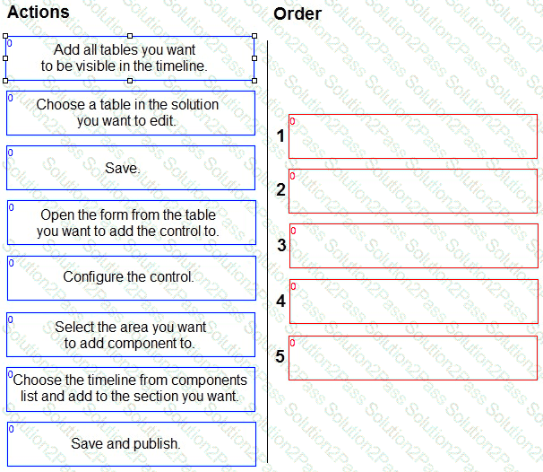 Which five actions should you perform in sequence? To answer, move the five appropriate actions from the list of actions to the answer area. Arrange the five actions in the correct order.