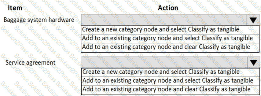 An airport uses Dynamics 365 for Finance and Operations. You purchase new baggage-sorting hardware.