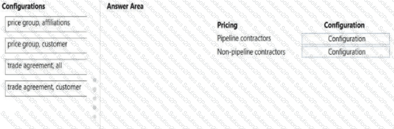 What should you configure? To answer, drag the appropriate configurations to the correct pricings. Each configuration may be used once, more than once, or not at all. You may need to drag the split bar between panes or scroll to view content.
