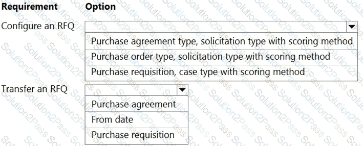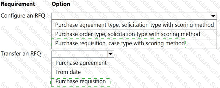 How should you configure the system? To answer, drag the appropriate entities to the correct requirements. Each entity may be used once, more than once, or not at all. You may need to drag the split bar between panes or scroll to view content.