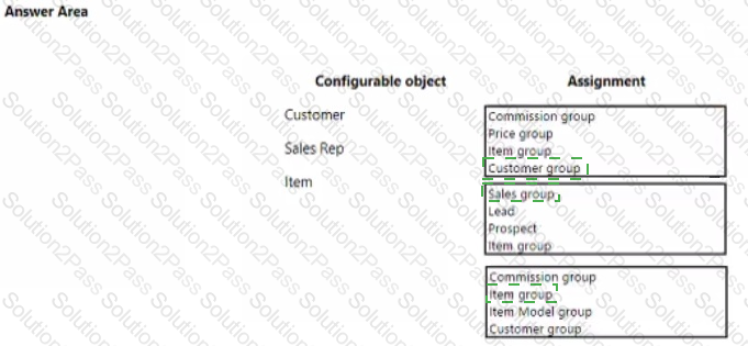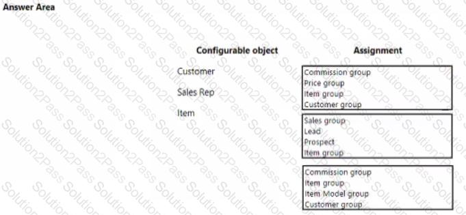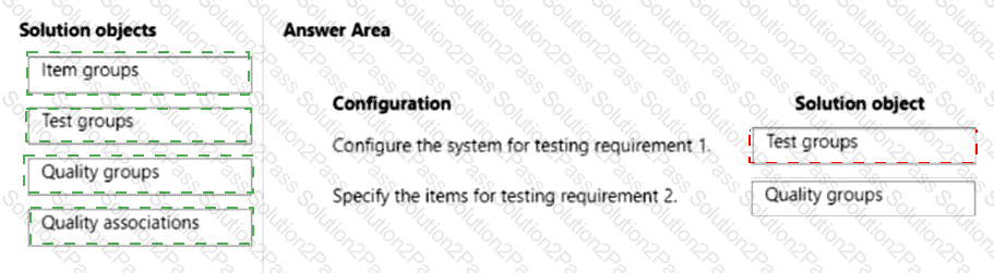 Which solution objects should you configure? To answer, drag the appropriate solution objects to the correct configurations. Each solution object may be used once, more than once, or not at all. You may need to drag the split bar between panes or scroll to view content.
