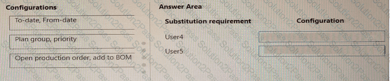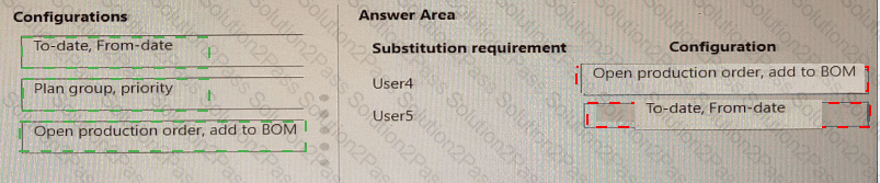 What must you configure? To answer, drag the appropriate configurations to the correct substitution requirements. Each configuration may be used once, more than once, or not at all. You may need to drag the split bar between panes or scroll to view content.