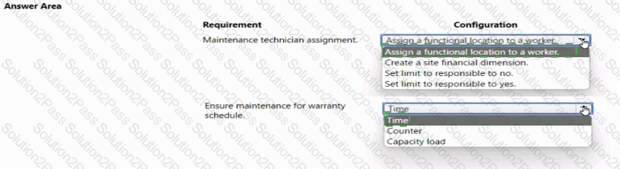 You need to configure the requirements for metal fabrication equipment maintenance. What must you configure? To answer, select the appropriate options in the answer area.