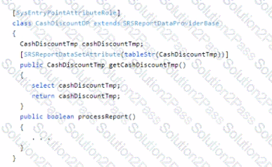 The accounting department requests two custom fields named CusStatus and CusDiscount for the header of the sales invoice SSRS report The custom fields are in the SatesTable table.