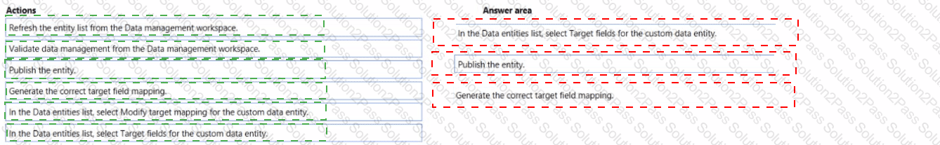 Which values should you set on the data entity properties? To answer, move the appropriate values to the correct data entity properties. You may use each value once, more than once, or not at all- You may need to move the split bar between panes or scroll to view content