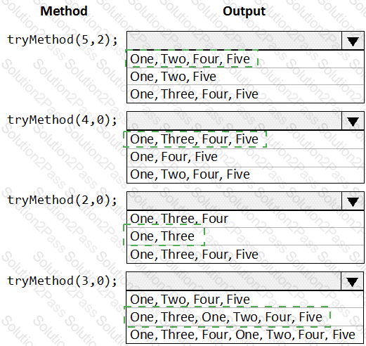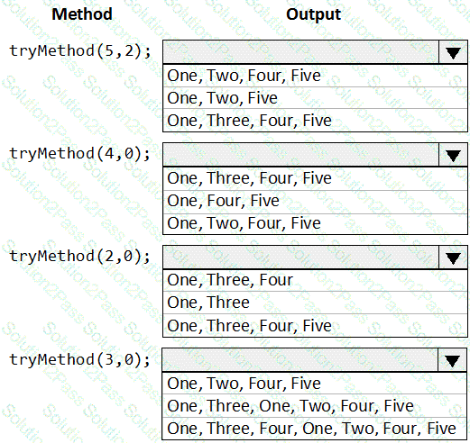 What is the correct output for the method? To answer, select the appropriate option in the answer area.