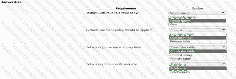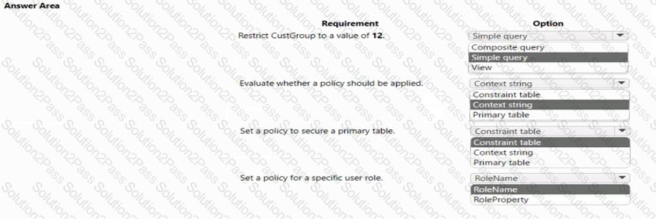 You are implementing record-level security by using Extensible Data Security (XDS) in Dynamics 365 Finance.