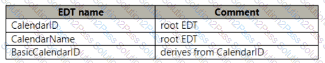 A company uses Dynamics 365 Finance. You are customizing elements for the extended data types (EDTs) shown in the following table.