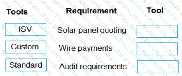 What should you recommend? To answer, drag the appropriate tools to the correct requirements. Each tool may be used once, more than once, or not at all. You may need to drag the split bar between panes or scroll to view content.