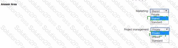 Which type of channel should you use for each department? To answer, select the appropriate options in the answer area.