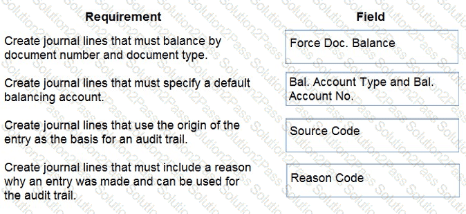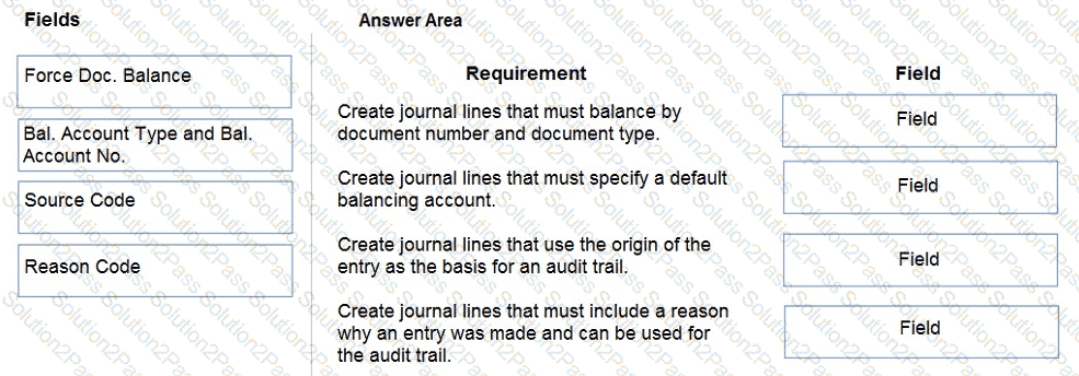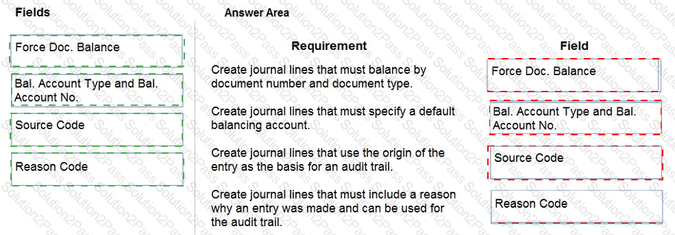 What should you do? To answer, drag the appropriate fields to the correct requirements. Each field may be used once, more than once, or not at all. You may need to drag the split bar between panes or scroll to view content.